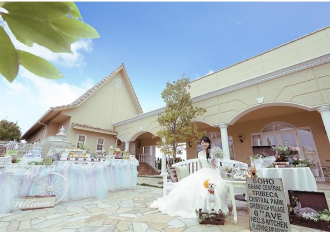- 美容室、クローク、スクリーン、メイク室、着付室、照明、ピアノ、控室、ガーデン、音響、MD、CD、マイク
