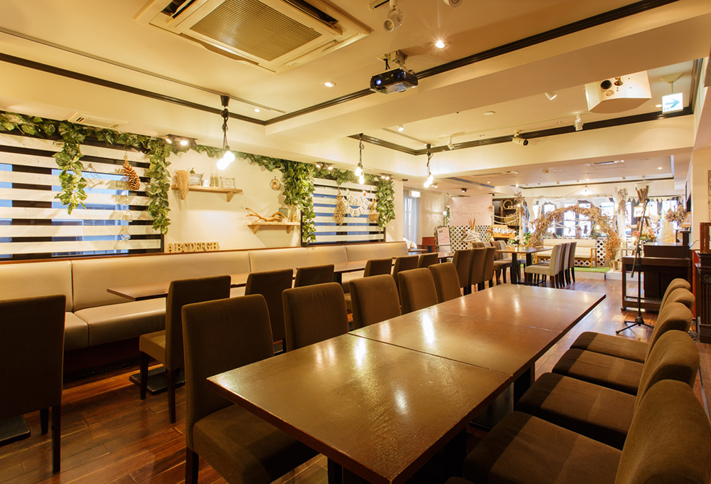 神社等での和婚後、ドレスに着替えてご友人と楽しむアフターパーティに!広島・袋町の「Party&Freespace Only」は、雰囲気を変えたカジュアルな貸切パーティに最適です。レイアウト自由な空間で、和やかな和婚の様子を大型スクリーンで上映することも可能。