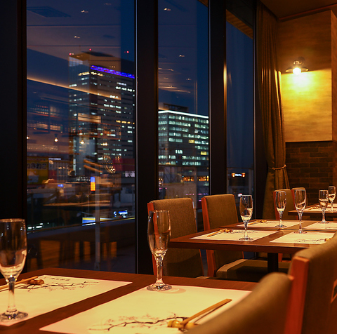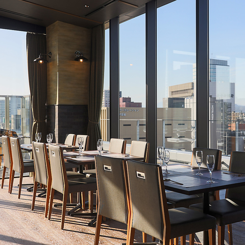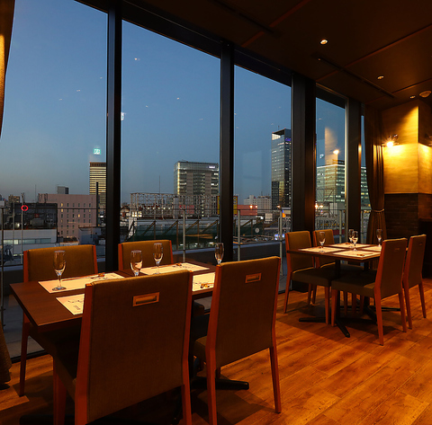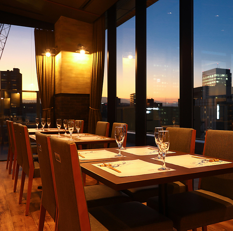神社での厳かな和婚の後は、ホテル13階の「仙台バル MUSUBI」で和モダンなパーティーを。仙台駅徒歩5分の好立地で、着席最大55名様まで貸切可能。美しい夜景が彩る開放的なテラスと、宮城の山海の幸を活かした「伊達な創作料理」の数々が、和装にもドレスにもぴったりな華やかな宴を上品に演出いたします。